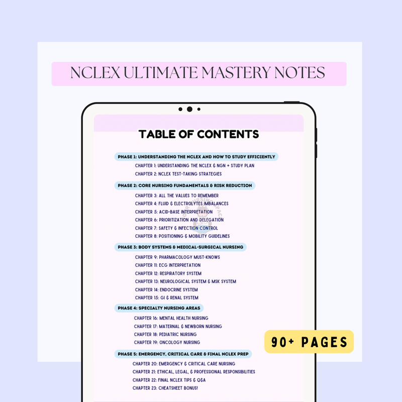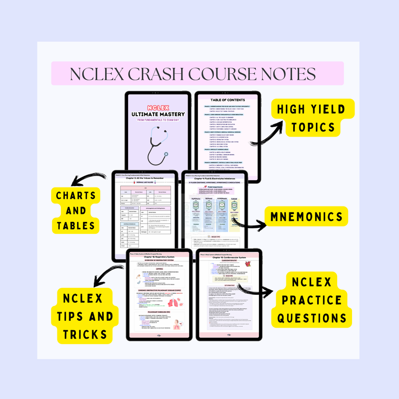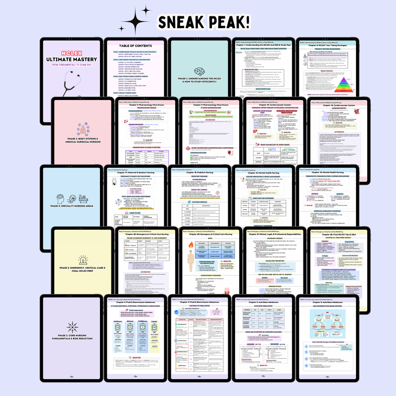 🌟 BONUS: NCLEX Final Review Cheatsheet – High-yield, last-minute concepts to boost your confidence before test day.