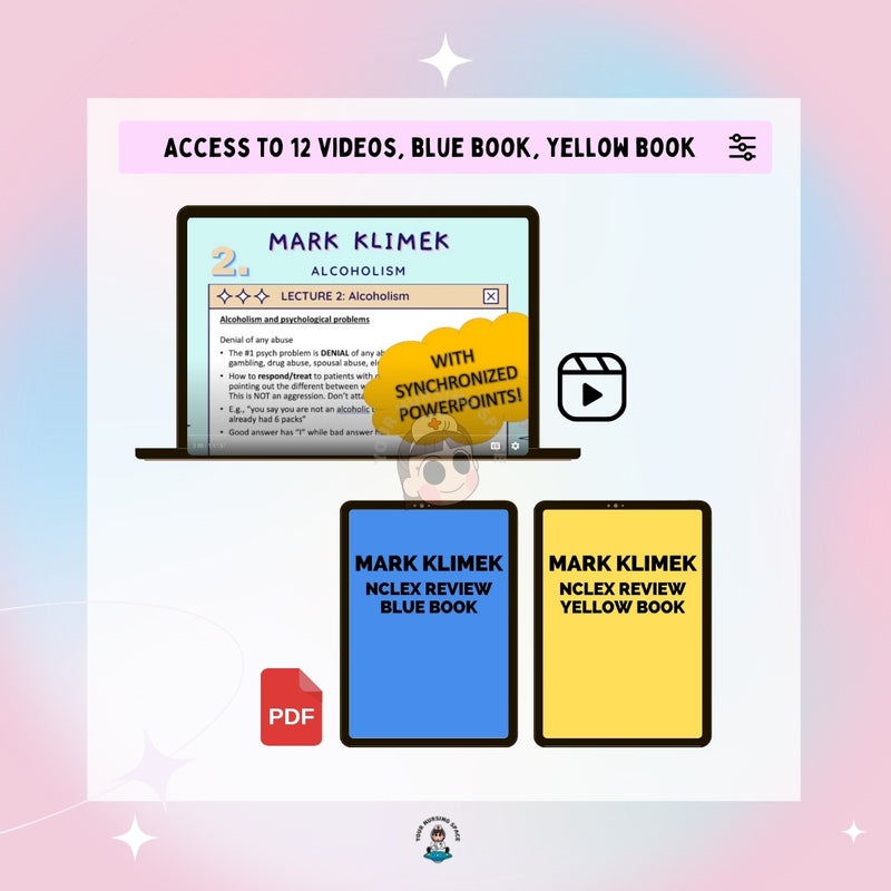 NCLEX Ultimate Bundle based on Mark Klimek | Blue, Yellow, Review Notes, and Bonus NCLEX prep Notes and links | Instant Access