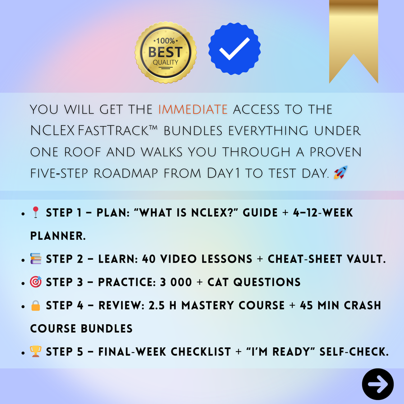 NCLEX FastTrack™ All‑in‑One Bundle — 5‑Step Study Roadmap with Personalized Planner, High‑Yield Lectures, 3 000 + CAT Q‑Bank & Crash Courses